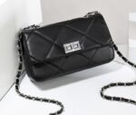 The Gala Clutch. The essential piece for elevated occasions. The timeless diamond quilting and prominent chain strap define a look of enduring luxury. Perfectly sized and featuring a polished turn-lock closure, this small, structured bag is engineered for securing your essentials while making a sophisticated statement at weddings, formal dinners, and signature events.